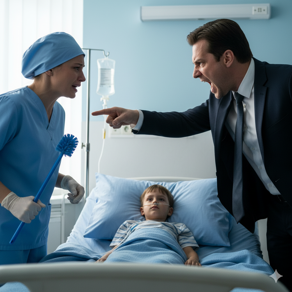 💔 era la conserje del hospital donde mi hijo estaba en coma — hasta que la enfermera me llamó “señora” delante de su padre rico.