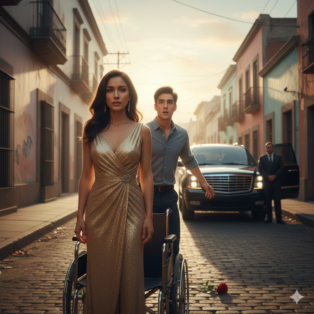 El coche giró hacia la avenida, el sol reflejándose en su vestido dorado. En su rostro, una expresión serena pero firme.