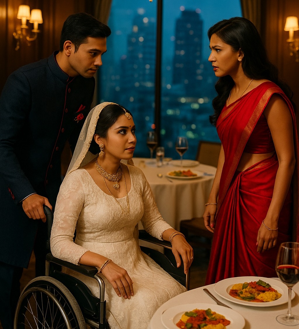 Esa noche pasé horas frente al espejo. El sari rojo bordado con hilos de oro me ceñía el cuerpo; llevaba el cabello rizado con esmero y un maquillaje que me daba la seguridad de una reina. Imaginé mi entrada al salón nupcial en Delhi, todas las miradas sobre mí y, después, la comparación: yo —radiante, orgullosa— frente a una novia frágil sentada en una silla de ruedas. Estaba segura de que todos me verían como la más especial.