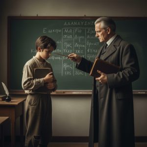 Camilo asintió sin bajar la mirada. El profesor chasqueó la lengua y se giró hacia el pizarrón con un movimiento seco. Trazó con fuerza una nueva frase, esta vez en griego y clásico. El sonido de la tisa quebrándose contra la pizarra resonó como un disparo en la sala. “Knócise aftonón. Bien”, murmuró Emiliano con una sonrisa torcida. Ilústranos, joven sabio.