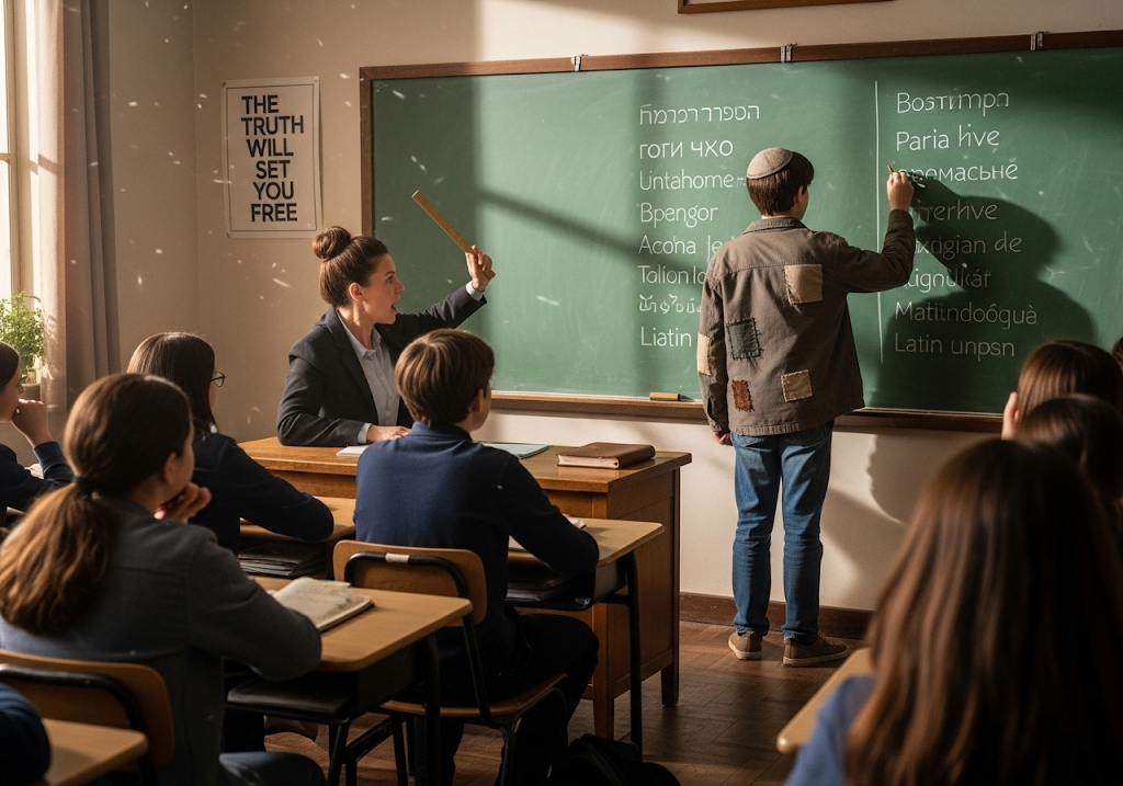 “¡CÁLLATE, ANALFABETO!” — Gritó La Profesora… Hasta Que El Niño Judío Escribió En 7 Idiomas