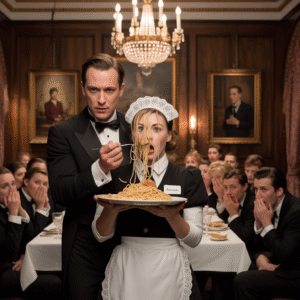 Él se levantó con una furia desproporcionada, como si aquello fuera una ofensa personal imperdonable. “¿Es que eres estúpida o qué? Solo tienes que servir comida, ni eso puedes hacer bien”, gritó con voz áspera, haciendo que todos en la sala se giraran a mirar. Elena solo agachó la cabeza temblando mientras murmuraba una disculpa, pero Gustavo no había terminado. Aquel hombre, acostumbrado a dar órdenes y ser reverenciado, parecía alimentarse del miedo. “Te voy a enseñar cómo se sirve la comida”, rugió mientras tomaba el tazón de espaguettis de su propio plato y lo levantaba en el aire.En ese instante, el silencio se volvió denso. Nadie se movió. Todos parecían paralizados y entonces lo hizo. Descargó el contenido del tazón sobre la cabeza de Elena como si fuera basura. Los espaguettis quedaron colgando grotescamente de su cabello mientras la salsa chorreaba por su rostro y su uniforme blanco ahora manchado. Una mujer al fondo, vestida de negro se llevó la mano al pecho horrorizada. Su nombre era Camila. Aunque nadie lo sabía en ese momento, su reacción no era solo de indignación.