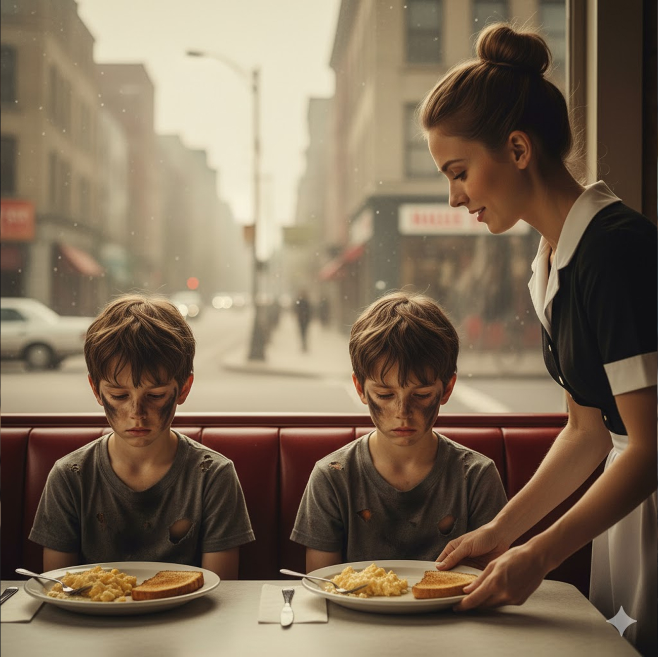Camarera Ofreció Comida a Dos Huérfanos, 17 Años Más Tarde un Coche de Lujo Aparece en su Casa…