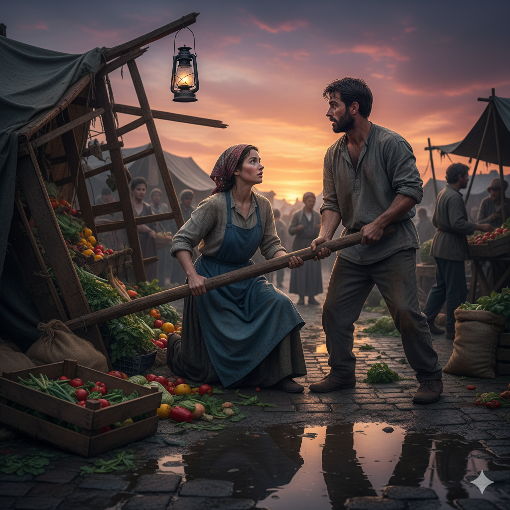 Mientras trabajaban juntos para armar de nuevo el puesto, Camila notó algo extraño: aunque él parecía familiar con las verduras, había una distancia en su mirada, como si cargara un peso invisible.