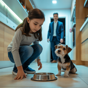 En un luminoso amanecer en los suburbios más acomodados, los rayos del sol se reflejaban en los suelos de mármol y en los marcos dorados de una mansión que parecía sacada de un sueño. Pero dentro de la gran cocina, un momento inesperado y desgarrador estaba a punto de cambiarlo todo. Alexander Grant, un empresario millonario conocido por su poder y control, entró y se detuvo en seco. Frente a él, su hija Sophie, de apenas siete años, estaba sentada junto al plato del perro, llevándose puñados de comida a la boca, con lágrimas recorriendo sus mejillas.