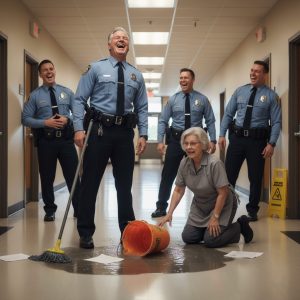 El grupo de oficiales superiores a su alrededor se deshizo en una ola de risitas. La Comandante Hayes, una mujer que había luchado por su rango y lo llevaba como una armadura, dejó que una sonrisa cruel tocara sus labios. El Teniente Park, apoyado contra la pared, se cruzó de brazos con una mirada de pura satisfacción. La mujer de la que se reían ni siquiera se inmutó. Era pequeña, tal vez de un metro sesenta, perdida dentro de la tela gris holgada de un uniforme de mantenimiento estándar. Simplemente siguió empujando su fregona, cada pasada constante y metódica, como si fuera la única persona en el mundo.