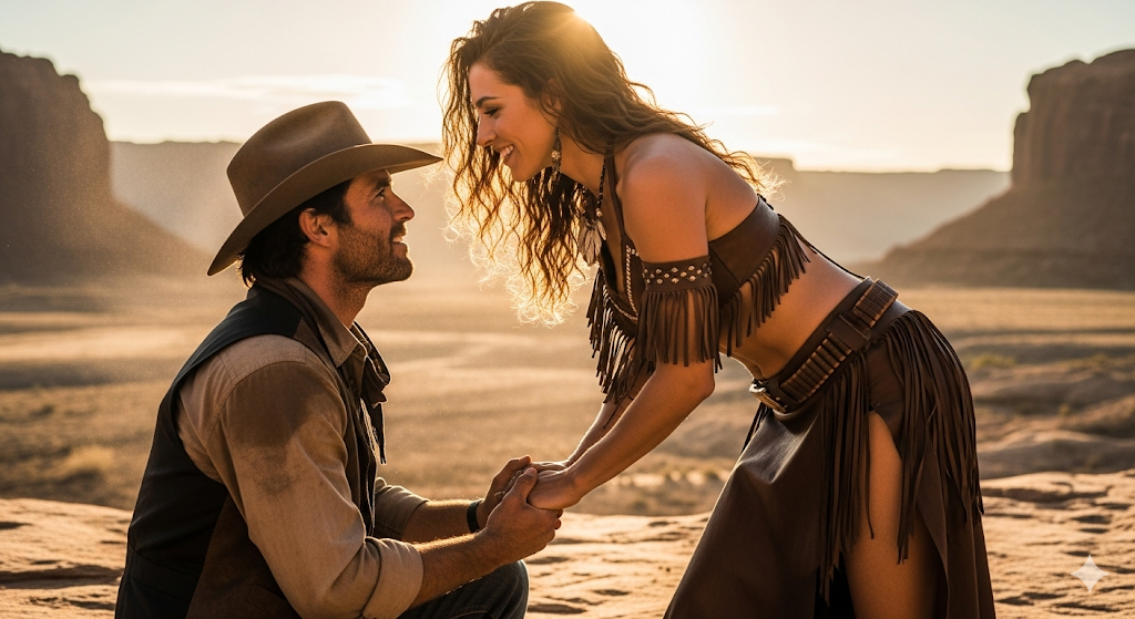 “¡Déjame tocarte ahí!!!” pidió el vaquero humilde — La gigante apache sonrió de vuelta…