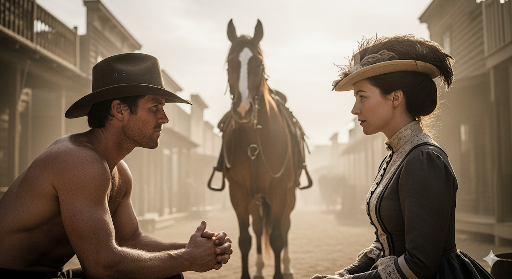 No los papeles, no el oro, no douche. Solo dos personas decidiéndose. Arthur partió antes del amanecer. Montado en el lomo del Mustang Negro, aquel que una vez domó con una manzana, se adentró en el gris del paisaje. Sus pasos eran firmes. Su corazón no tanto. Detrás de él, Esuetuater dormía con una falsa paz.
