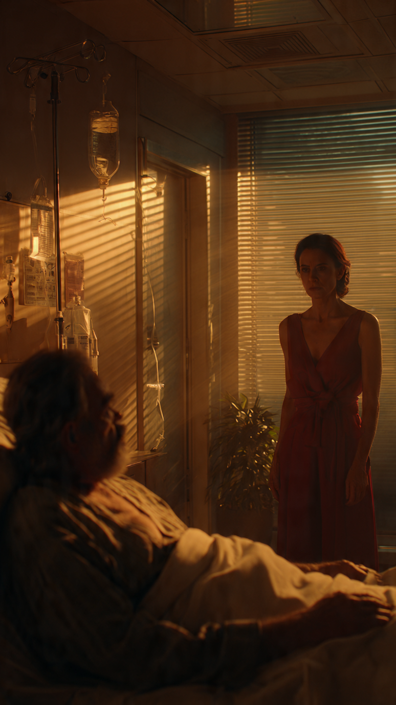 Una mujer joven, de vestido rojo y labios perfectos, caminó por el pasillo con unos tacones que resonaban como cuchillos sobre el piso del hospital.