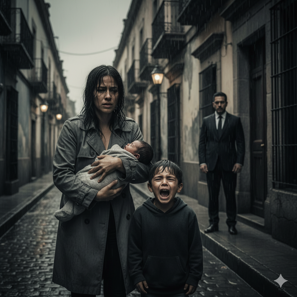 Esperanza ajustó a su bebé Santiago contra su pecho con una mano y con la otra quitó su chaqueta empapada para cubrir los hombros del niño. Sus propios labios estaban morados del frío, pero no dudó ni un segundo. ¿Dónde están tus papás, Mateo? Preguntó con voz dulce, protegiéndolo con su cuerpo