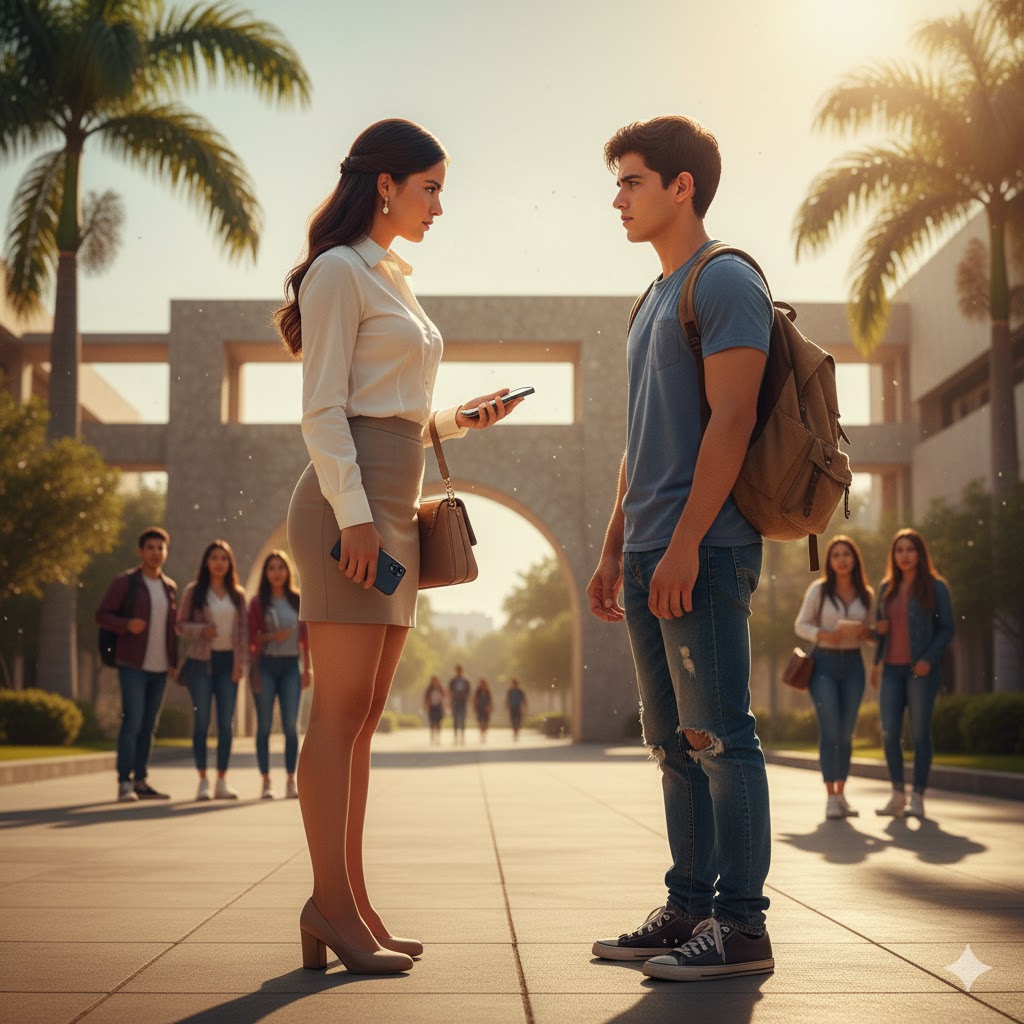 Luz entró con su grupo de amigos, todos vestidos con ropa de marca. Lo vio ahí y, fingiendo inocencia, levantó la mano: