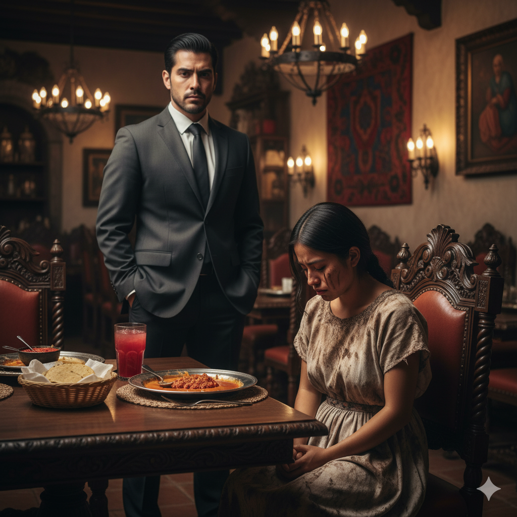 —Porque nadie debería buscar entre las sobras para sobrevivir —dijo con voz firme—. Come tranquila. Yo soy el dueño de este lugar. Y desde hoy, siempre habrá un plato esperándote aquí.