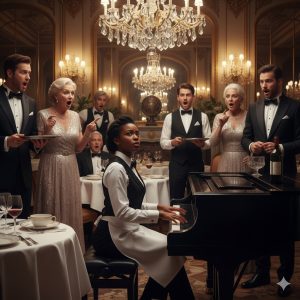 Algunos comensales se movieron en sus asientos, alguien tosió en la parte de atrás. Deborah los ignoró, su enfoque se agudizó mientras se adentraba más en la música. Eligió una pieza que conocía de memoria, una versión llena de alma de “Clair de Lune” de Debussy…