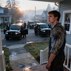A la mañana siguiente, apenas había salido el sol cuando un estruendo sordo resonó en el tranquilo vecindario. Siete lujosos todoterrenos negros doblaron la esquina y se alinearon frente a su casa. Los vecinos espiaban por las cortinas. El corazón de Jake latía con fuerza. La puerta de uno de los vehículos se abrió lentamente y un hombre con traje negro salió. Miró a Jake y pronunció seis palabras que lo cambiarían todo para siempre: “Señor Miller, ella desea verlo”.