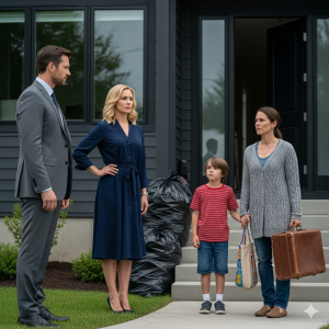 El punto de quiebre llegó una tarde de otoño. Claire regresó a casa con Ethan después de hacer las compras, solo para encontrar sus pertenencias en bolsas de basura junto a la puerta. Vanessa estaba en la sala, cómodamente sentada en el sofá. Daniel se mantenía erguido, casi con aire triunfal.