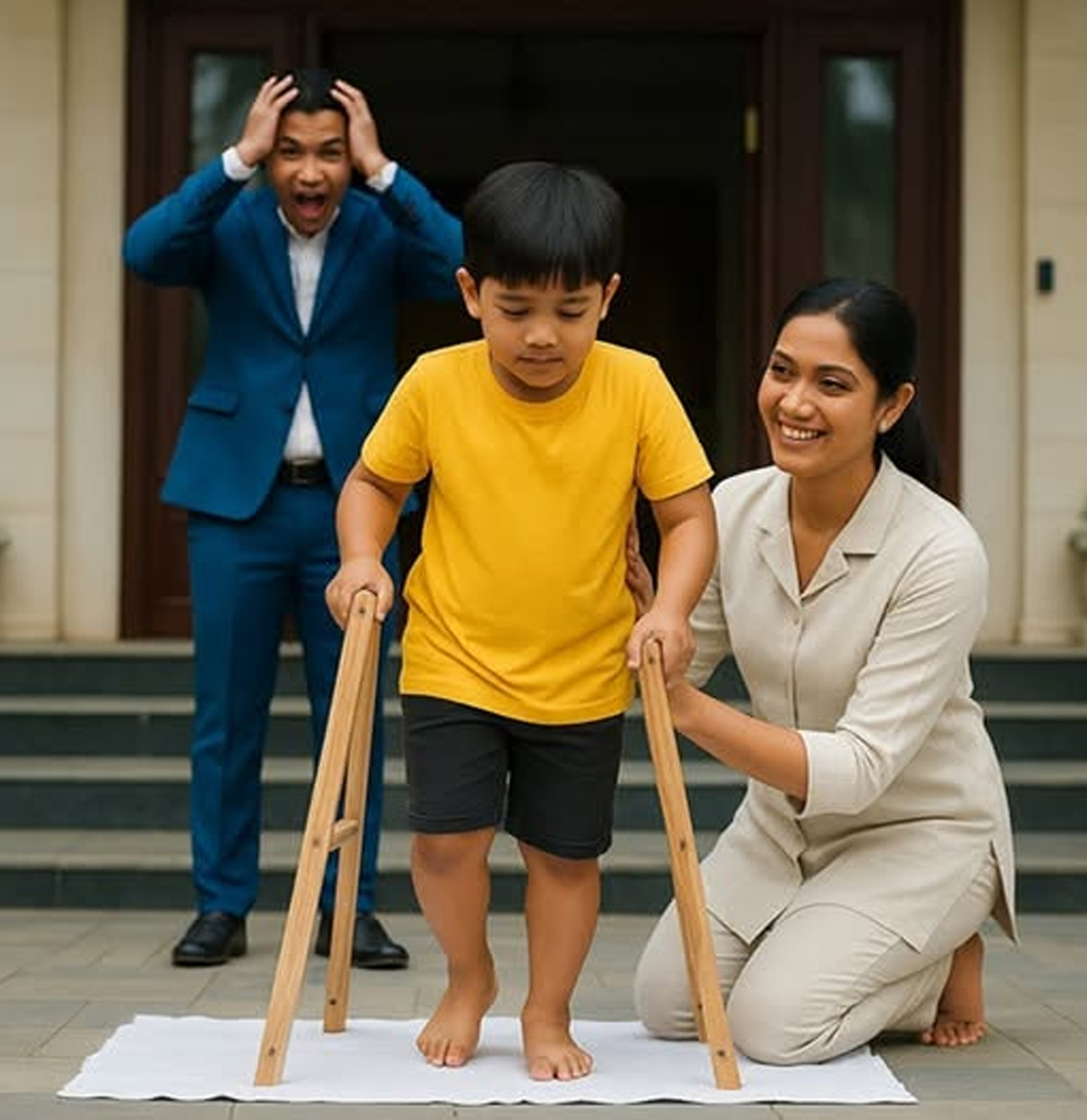 Subía las escaleras despacio, con el corazón latiéndole con fuerza. La puerta del cuarto de Aarav estaba entreabierta. Por la rendija vio algo que lo dejó inmóvil… Asha estaba sentada en el suelo, sosteniendo con ambas manos el cuerpo delgado de su hijo, ayudando con paciencia a Aarav a ponerse de pie despacio. Aarav estaba empapado de sudor, pero en su rostro se veía alegría mezclada con determinación. Sus piernas temblaban, cojeaba con cada paso, y Asha lo alentaba: