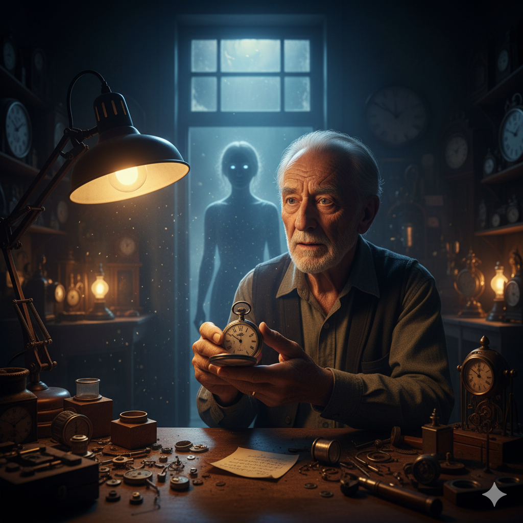 Todo comenzó cuando Doña Clara, la mujer que cuidaba el panteón municipal, llegó a su taller con un paquete envuelto en tela vieja. Dentro había un reloj antiguo, olvidado entre las lápidas. El reloj estaba detenido, su manecilla apuntaba a las 11:13, y tenía una inscripción casi borrada: “Para quien cuida el tiempo, gracias eternas.”