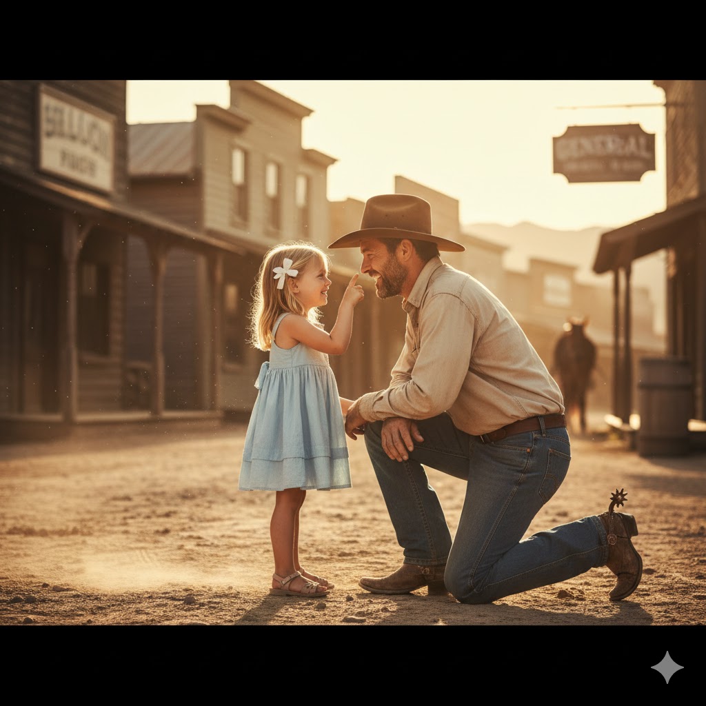 —¿Sabes qué hace un vaquero de verdad, papá? —preguntó ella, riendo.