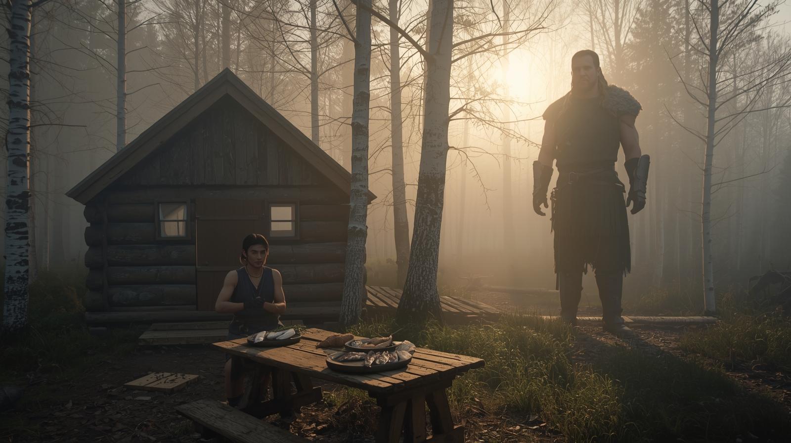 Solo dijo, “Si aún deseas compartir pan y fuego, caminaré hacia ti.” El día que ella llegó, el aire del bosque se volvió espeso. Halgrim había preparado pan de centeno y pescado seco, dejando una rama de romero sobre la mesa. Había limpiado la entrada, encendido la fragua y vestido su mejor túnica, aunque esta le quedaba un poco grande.