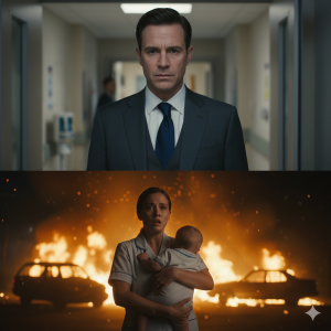 Mas, ao passar pela velha ponte do condado, ela viu algo que faria seu coração parar: uma explosão de luz laranja no céu escuro. Fogo. Ela freou bruscamente, saiu do carro e correu em direção ao incêndio. Um carro estava à beira da estrada, fumaça saindo do capô. E então ela ouviu — o som que a fez esquecer o cansaço, a fome, o medo.