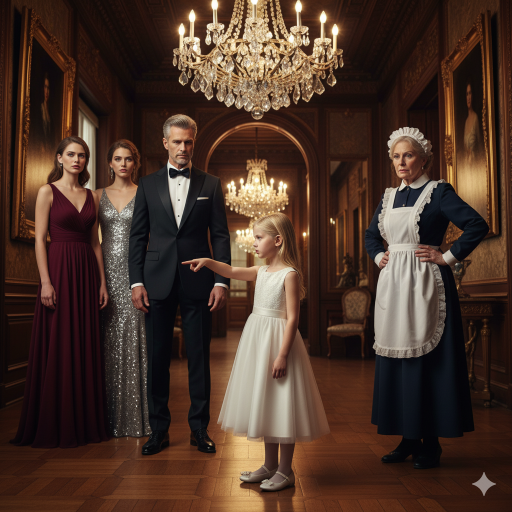 En un salón lleno de modelos, trajes de gala y diamantes, la hija del magnate debía escoger a una madre sustituta. Los invitados esperaban una decisión predecible. Pero Amelia, con voz inocente y firme, eligió a alguien que nadie esperaba: la humilde criada que siempre había estado a su lado.