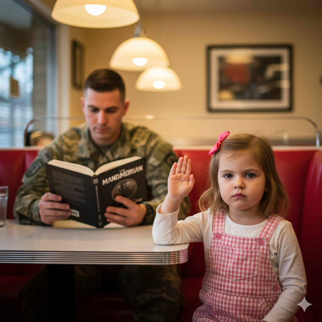 El murmullo de la tarde en Miller’s Diner se rompía sólo con el tintinear de los cubiertos y el bajo murmullo de las conversaciones. Las familias se acomodaban en las cabinas, los camioneros sorbían café humeante, y una vieja rocola zumbaba suavemente en la esquina. El sargento Daniel Whitmore, recién regresado de una misión, estaba solo en la barra, removiendo distraídamente su café negro. Sus ojos agudos —entrenados para notar detalles que otros pasaban por alto— se posaron en una pequeña figura al otro lado del lugar.