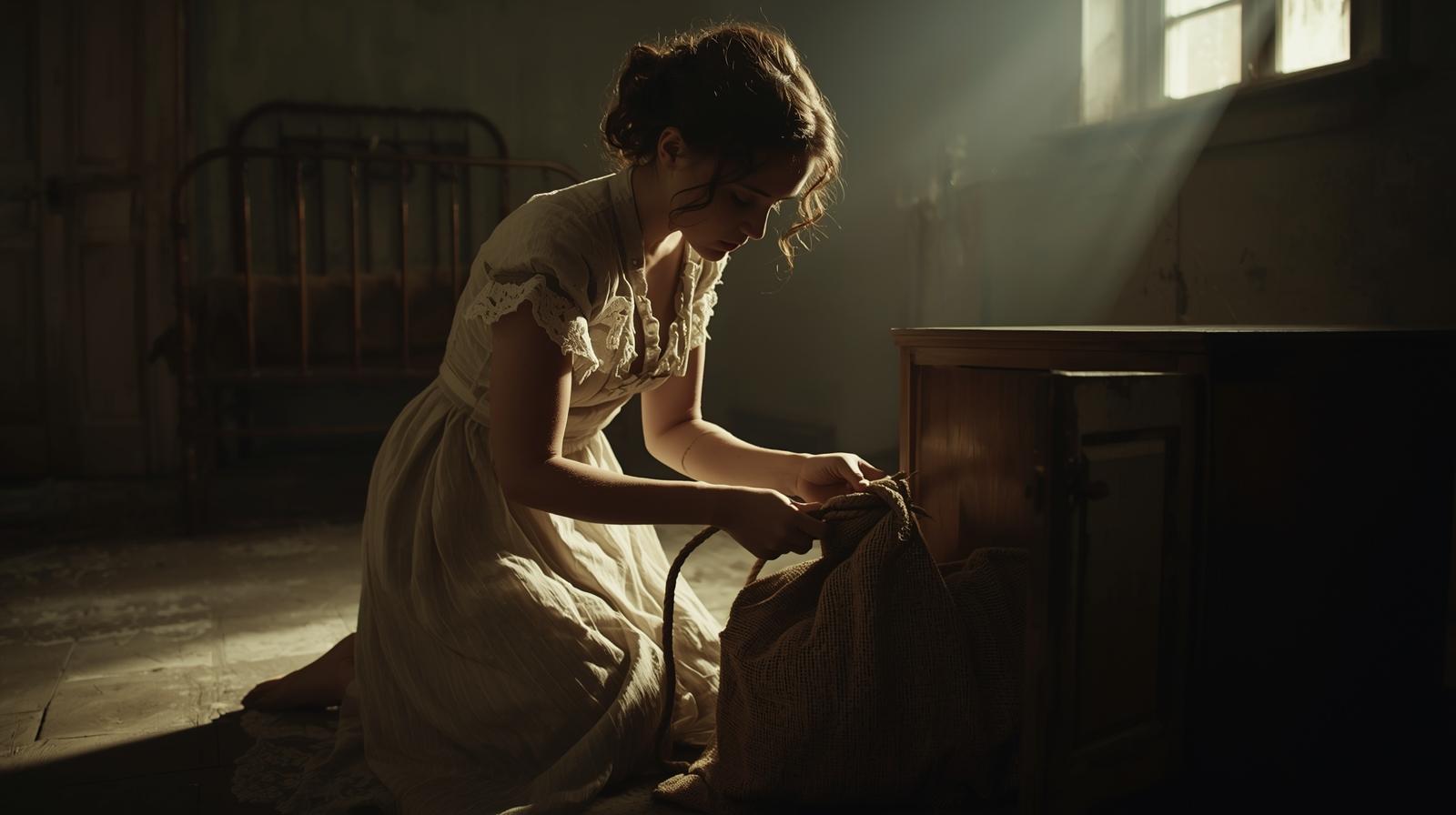 Camila se sentó al borde, con el vestido aún puesto, mirando alrededor: una silla rota, una lámpara sin pantalla y un viejo ropero de madera oscura, con tallados florales que parecían de otra época.