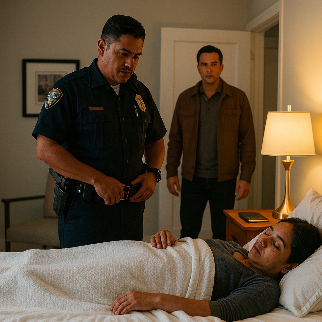 Las palabras me golpearon como agua helada. Me quedé paralizado, dividido entre correr al lado de mi esposa y obedecer la fuerza autoritaria de su voz. El oficial dio un paso cuidadoso hacia adelante, con los ojos fijos en la figura de la cama. Mi propia respiración se detuvo mientras confusión y terror se mezclaban.
