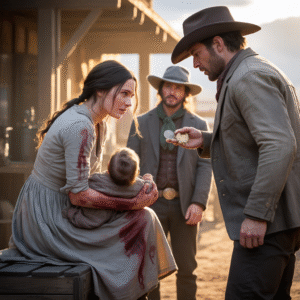 Hombres con abrigos de lona, rostros familiares de la peor manera. Isa había visto a uno de ellos en la plaza riendo cuando ella sangró a través de las tablas. Estaba en la cabaña cuando oyó el portazo y las voces ladrando. Jack salió del granero, escopeta ya en mano, calmado como hombre que ha visto cosas peores. “Buenas noches”, dijo uno de los jinetes con dientes amarillos. “Venimos por lo que es nuestro.