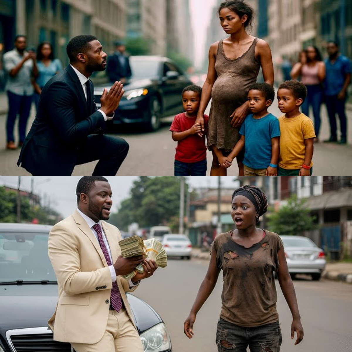 Nueva York, NY — En una escena que se desarrolló como algo sacado de una novela trágica, uno de los multimillonarios más poderosos de Estados Unidos fue puesto de rodillas bajo la lluvia torrencial después de descubrir que una mujer embarazada y sin hogar que mendigaba en la calle no era otra que su ex esposa perdida hacía mucho tiempo, y que los tres niños que temblaban detrás de ella eran los suyos.