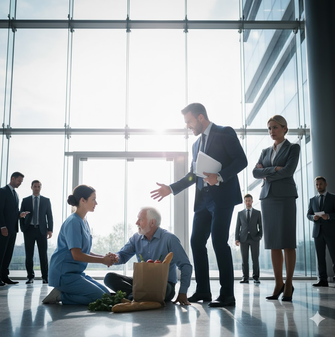 Cada vez que caminaba por el vestíbulo de la Thompson Tower, recordaba aquel instante: el anciano en el suelo, las miradas frías, y la decisión que cambió su destino.