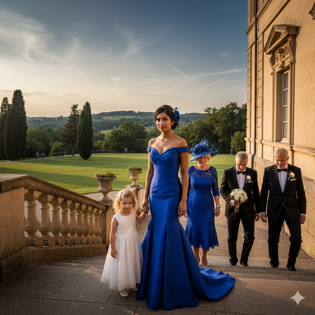 Vestía un vestido azul marino ajustado que brillaba con la luz.