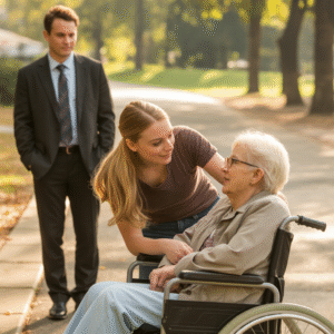 Era una tarde de martes cuando escuchó el llanto, un llanto que no era de niño, sino de alguien mayor, quebrado por la desesperación. Valentina se detuvo en seco, su corazón latiendo más fuerte de lo normal. Siguió el sonido hasta encontrar a una anciana elegante sentada en el bordillo de la acera con lágrimas rodando por sus mejillas arrugadas. La mujer estaba sentada en una silla de ruedas antigua y desgastada.
