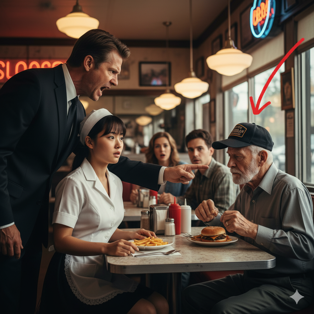 Una camarera dejó caer una taza. Nadie se movió. El silencio volvió, pero esta vez era distinto. Era un silencio cargado de rabia. El veterano, aún sin decir palabra, levantó la mirada por primera vez y asintió lentamente hacia los soldados. Era él. era Owens. Y esos hombres no eran simples clientes, eran hermanos de armas.