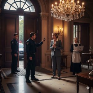 “¡Espere… ¿la empleada era una policía encubierta?!” Sofía observó cómo el coche de policía desaparecía por la calle. Se quitó el delantal, se volvió hacia la casa y dijo en voz baja: “Caso cerrado. Es hora de volver a mi nombre real.”