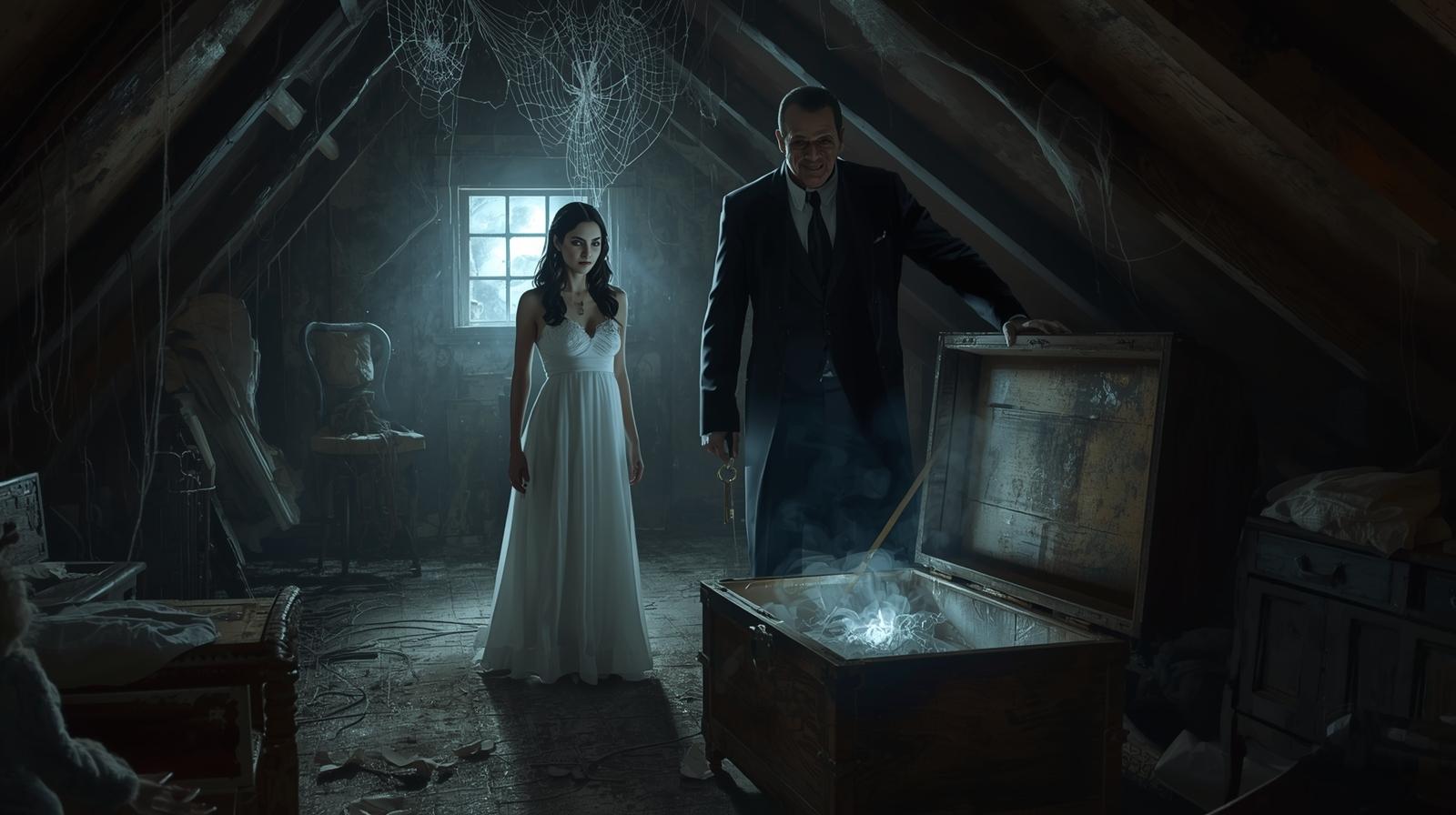 Aquella noche, después del banquete que apenas tuvo música, pensé que por fin dormiríamos en el dormitorio principal. Pero Don Aurelio me tomó de la mano y me condujo por una escalera estrecha y polvorienta hasta el ático.