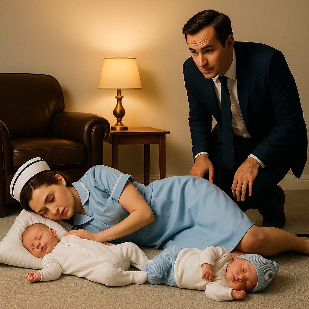 Elena Reyes, la mujer a la que nunca había visto con un cabello fuera de lugar bajo su nítido gorro de enfermera blanco, estaba desplomada sobre la suave alfombra de lana. No estaba en el sofá cama para el personal; estaba tirada directamente en el suelo, acurrucada inconscientemente al lado de las dos cunas.