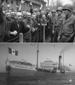 Mientras tanto, en el otro lado del mundo, las águilas aztecas del Escuadrón 2011 surcaban los cielos filipinos en sus Thunderbolts, descargando fuego y metralla sobre posiciones japonesas. Los contrastes no podían ser más dramáticos. Mientras unos mexicanos luchaban con orgullo bajo la bandera nacional, otros sobrevivían en silencio en los campos nazis con la M, en sus uniformes como única conexión con su patria lejana. El 11 de abril de 1945, unidades del tercer ejército de los Estados Unidos liberan Buckenwald.