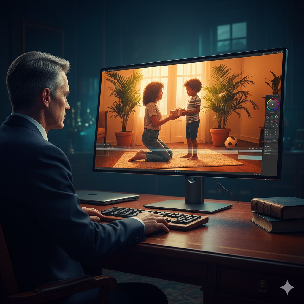 Esa noche, fue al cuarto de Diego para darle un beso de buenas noches, como siempre, un ritual silencioso y algo rígido. El niño ya dormía. En la mesita de noche había un dibujo: una figura alta, vestida de negro, con rostro triste, a un lado; al otro, una figura más pequeña con un pincel azul en la mano. Entre ellos, líneas coloridas y confusas, como un puente en construcción.