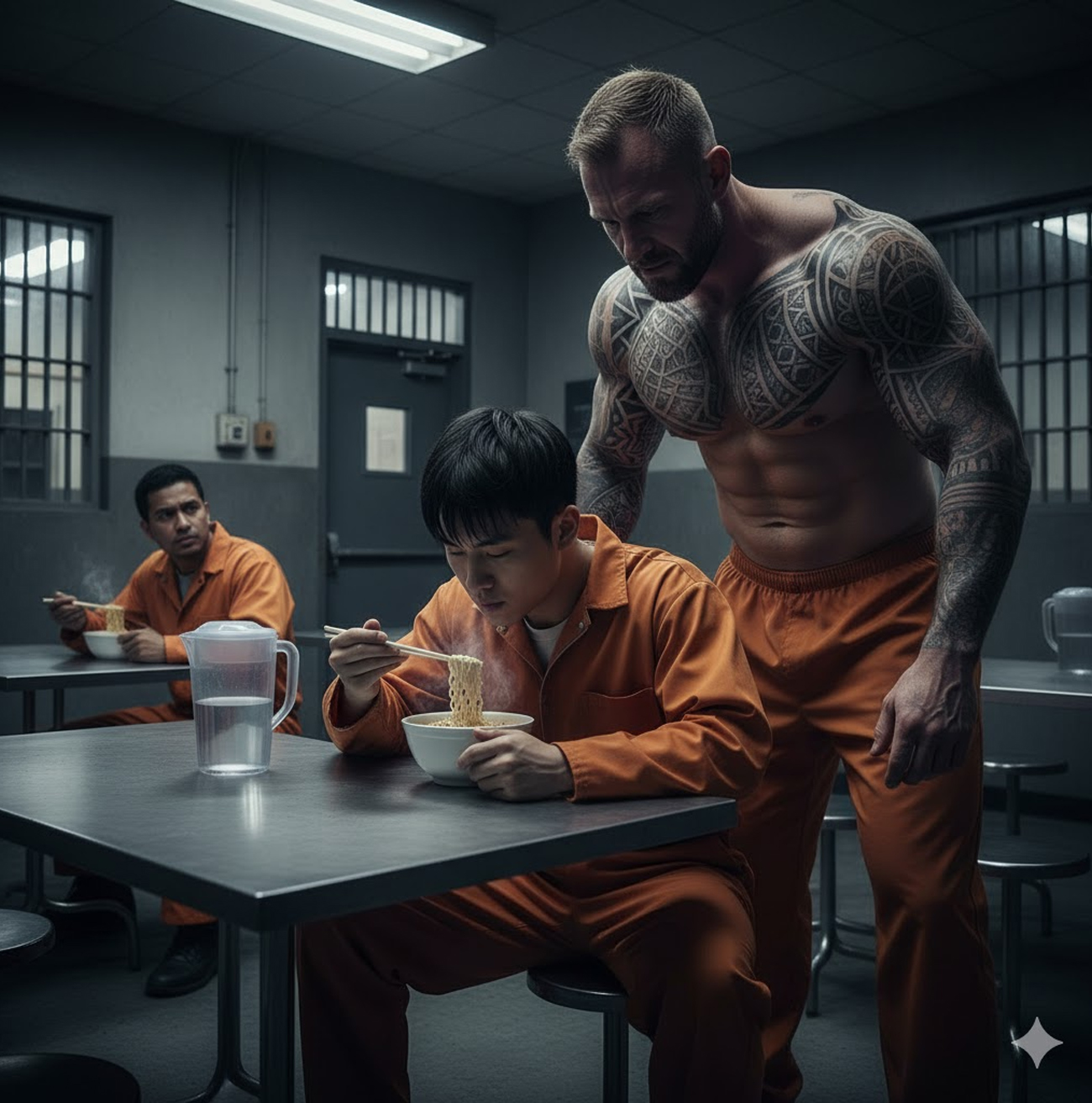 Se quedó ahí respirando hondo con los puños cerrados, sintiendo como cada músculo de su cuerpo recordaba su entrenamiento. El silencio de su mente contrastaba con el bullicio de las burlas. Esa noche, al volver a su celda, su compañero de cuarto, un viejo tatuado que lo observaba en silencio desde su llegada, le dijo con una voz rasposa, “Yo sé quién eres.