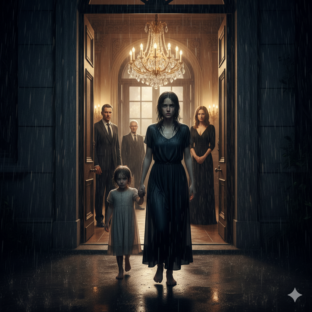 La tormenta golpeaba como látigos cuando quedé sola en los escalones helados de la mansión Whitmore. Mis brazos abrazaban a Lily con desesperación, intentando protegerla del agua y del mundo que acababa de expulsarnos.