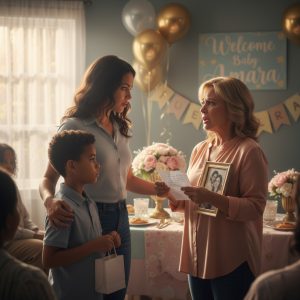 Llegó el día del baby shower. El lugar era elegante — globos dorados, centros de mesa florales, un cartel que decía “Bienvenida, bebé Amara.” Kiara brillaba, radiante con su vestido de maternidad pastel. Nos abrazó calurosamente. Por un momento, pensé que todo iba a estar bien.