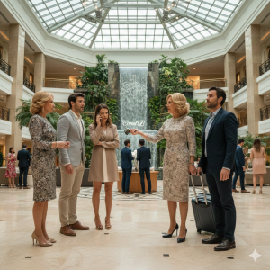 Cuando vi a mi suegra Ramón a repartir las llaves del hotel a todos los miembros de la familia menos a mí, sentí como si el mundo se detuviera. Estábamos parados en el hobby del resort Coral B, el hotel más exclusivo de la región, con pisos de mármol travertino italiano y una cascada artificial que caía desde el techo de cristal. Mi esposo Tomás estaba a mi lado, pero parecía más interesado en admirar la arquitectura que en notar lo que estaba pasando.