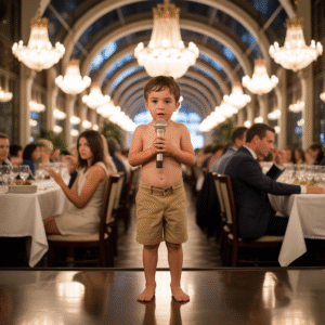 Él estaba de pie en el pequeño escenario improvisado de aquel lujoso restaurante, un niño de 10 años temblando ante una audiencia silenciosa. El joven rico le había exigido una canción a cambio de comida. El niño cerró los ojos, pensó en su hermana enferma y cantó. Y con la primera nota, el mundo se detuvo.