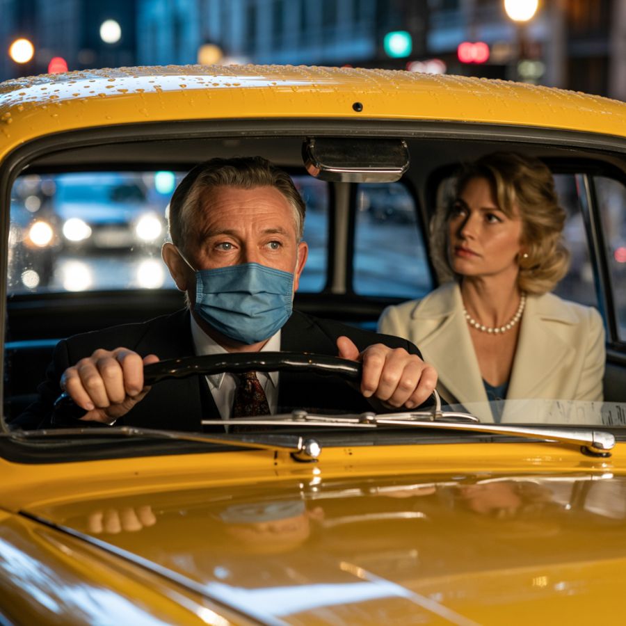 La lluvia golpeaba el parabrisas del viejo taxi amarillo mientras Pablo ajustaba la gorra de conductor que había comprado esa misma mañana.