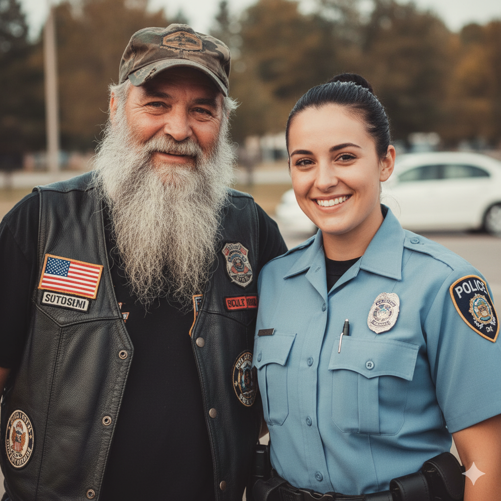 El motociclista miró la placa con el nombre de la policía mientras ella le ponía las esposas—tenía el nombre de su hija.