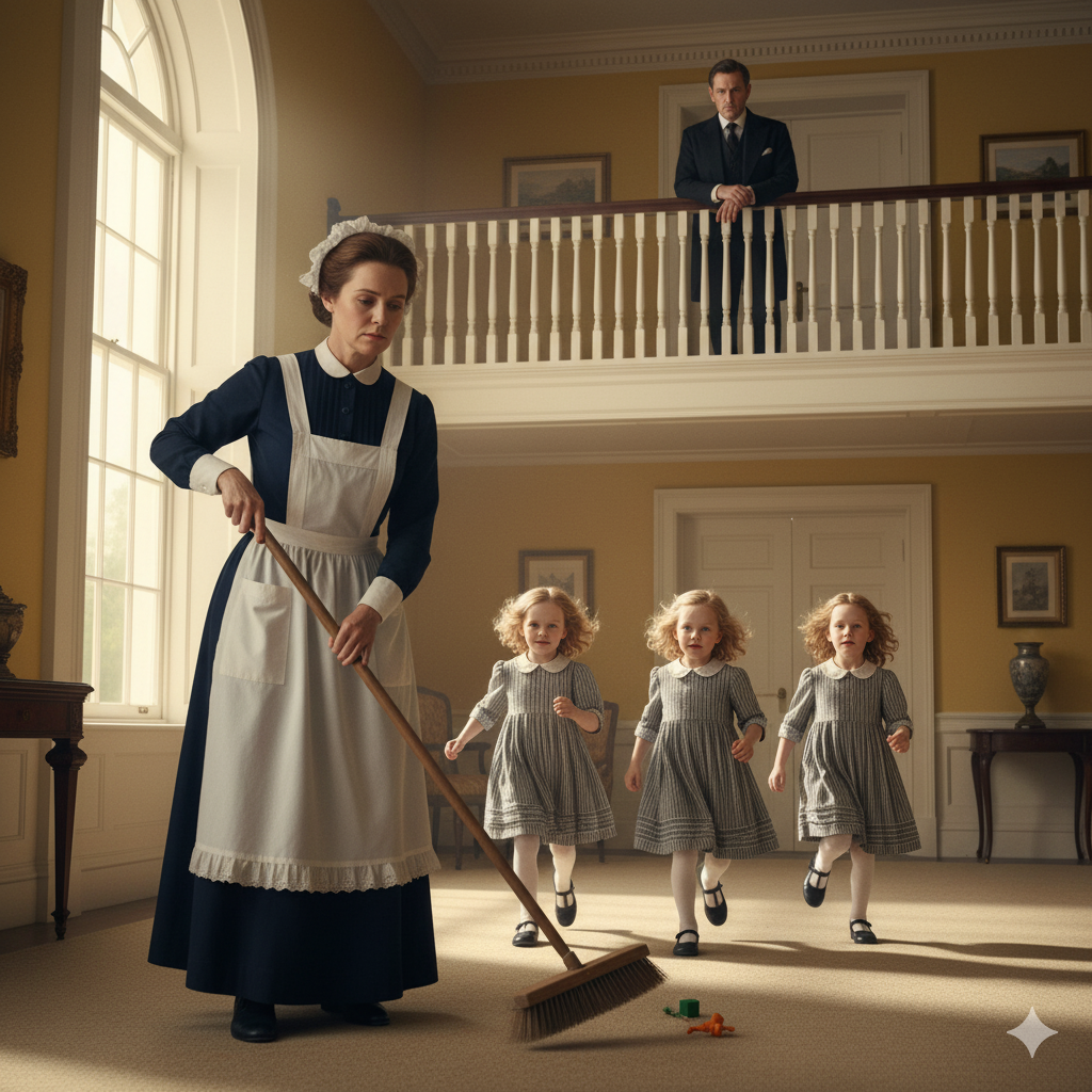 La ama de llaves, cansada de entrenar a niñeras que no duraban, apenas habló cuando le entregó el uniforme. “Empieza por el cuarto de juegos”, murmuró. “Ya verás”.