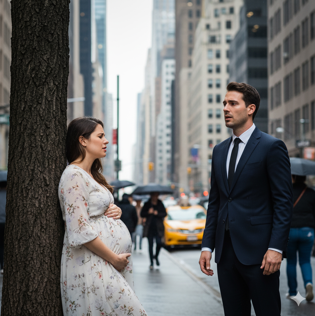 Mientras esperaba que el semáforo cambiara, su mirada se desvió hacia la acera… y entonces la vio. Una joven, visiblemente embarazada, sentada bajo un árbol con una maleta a su lado. No era raro ver personas sin hogar en la ciudad, pero algo en ella lo hizo mirar dos veces.