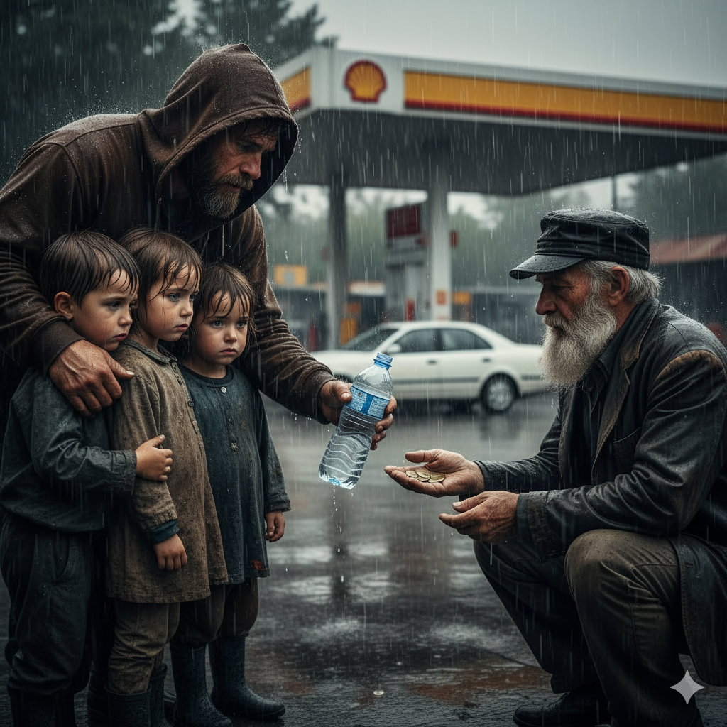 O pai de três filhos gastou suas últimas moedas para pagar a água de um senhor, e na manhã seguinte, uma SUV parou em frente à sua barraca.