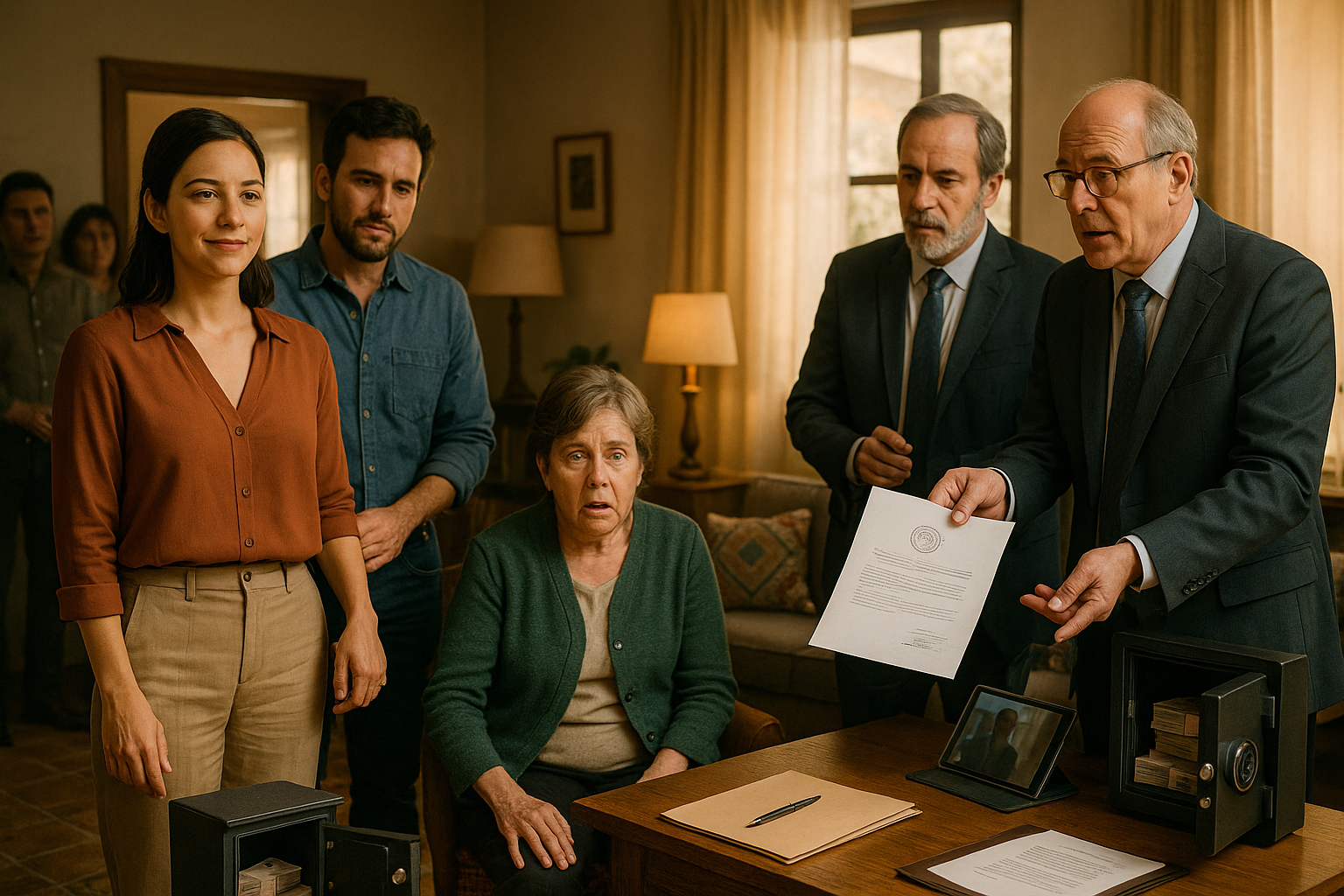 Unos días después, cuando ya planeaba usar el dinero para comprar un terreno a nombre de su hijo mayor, llegaron el abogado y el notario a la casa, presentando todas las pruebas. Los parientes que estaban presentes murmuraban sorprendidos; ella se puso pálida, tartamudeando sin poder defenderse.
